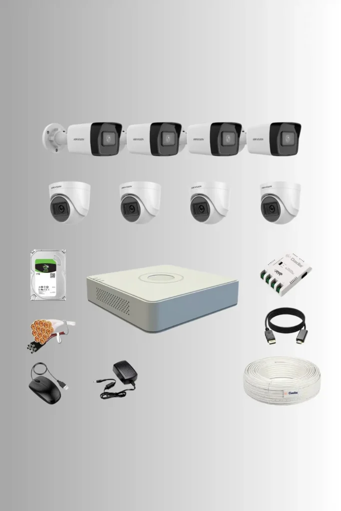 ✔ Complete 8-camera bundle — includes 4 Dome + 4 Bullet Cameras for full indoor + outdoor coverage.